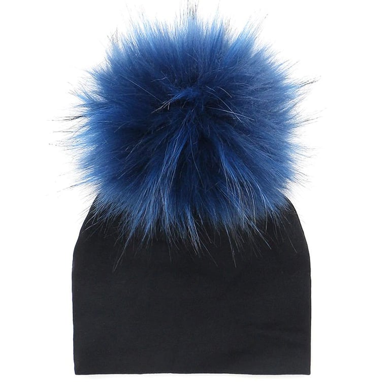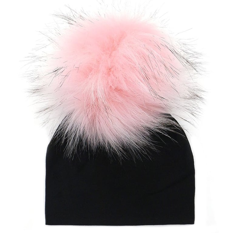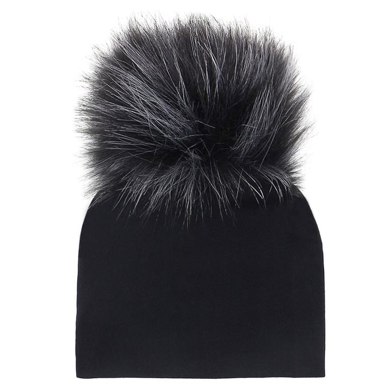 This winter hat in black with colourful pom-poms will keep you warm.