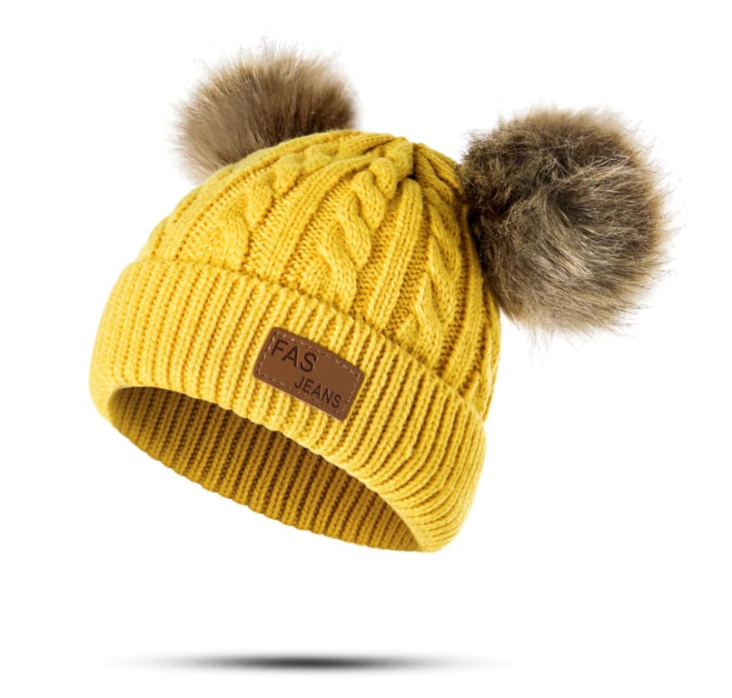 This beautiful winter hat with pom-pom ears will keep your child warm.