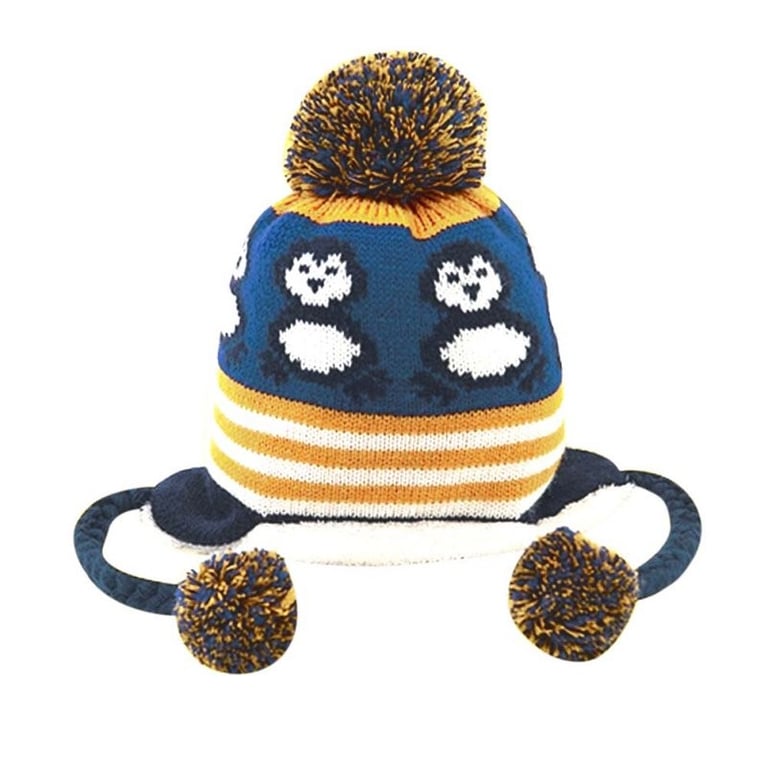 Keep your child's head warm with this hat featuring embroidered penguins.