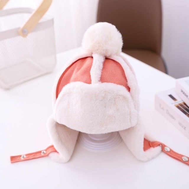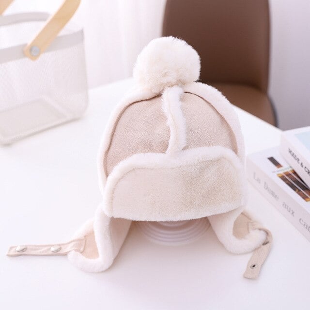 Children's winter hat with fur on the inside and a stylish pom-pom.