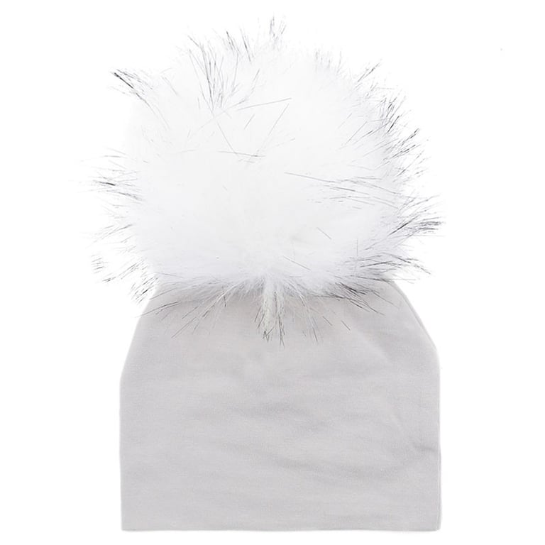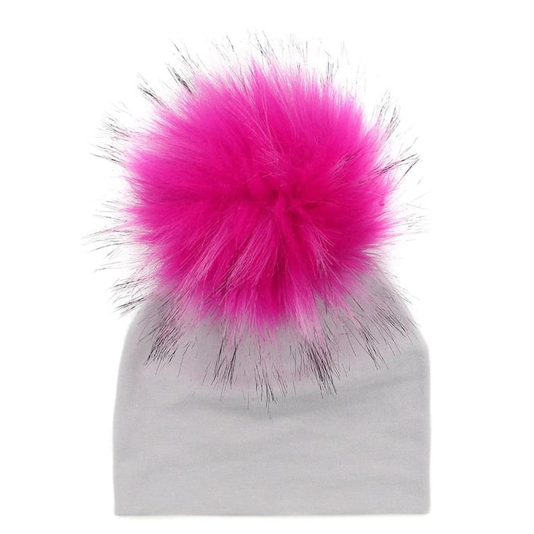 This winter hat in grey with colourful pom-poms will keep your child warm on chilly days.
