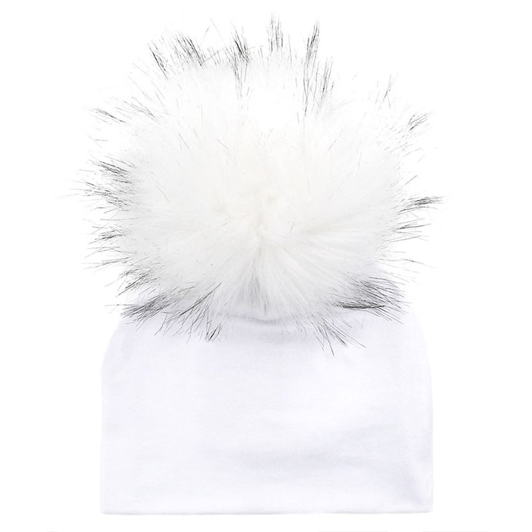 This winter hat in white with colourful pom-poms will keep your children's heads warm.