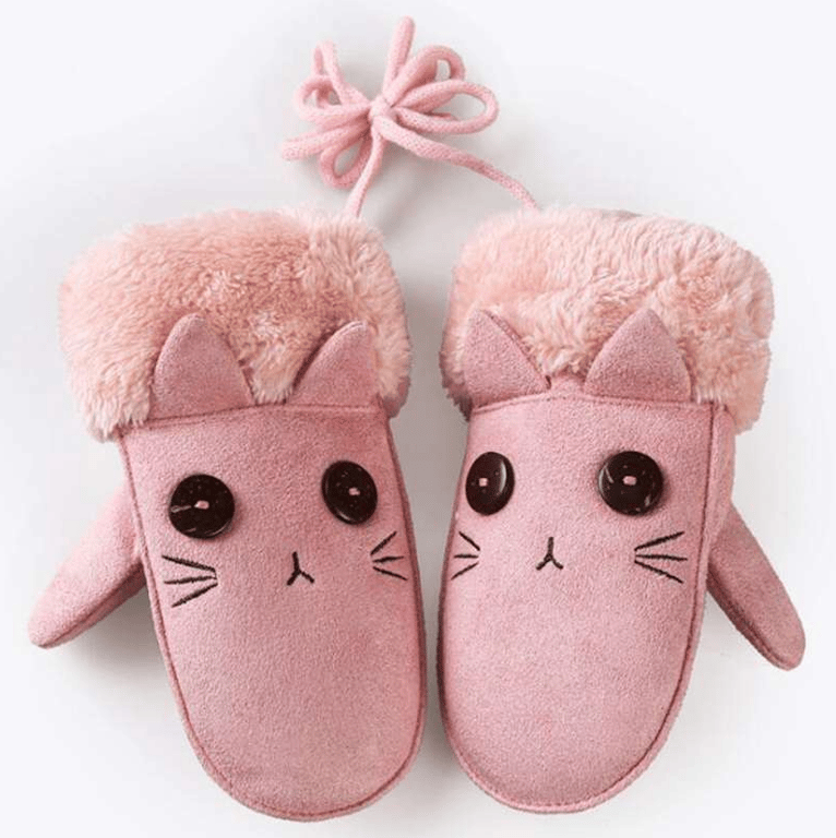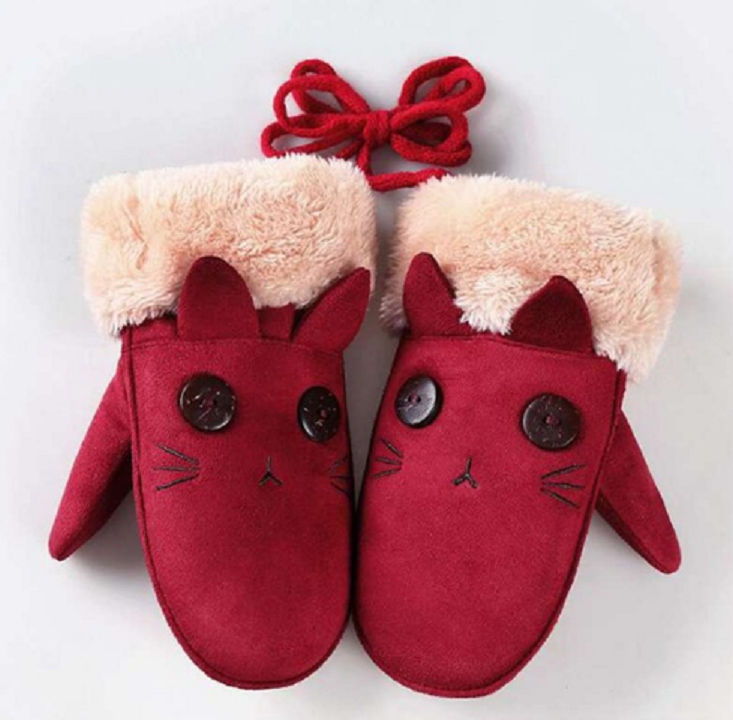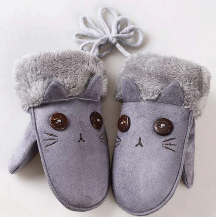 Beautiful warm mittens with a cat embroidery.