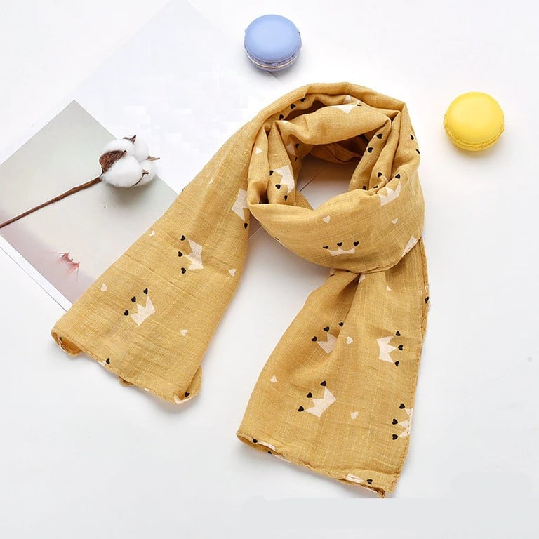 If you want to keep your child's neck warm, this crown print scarf is perfect.