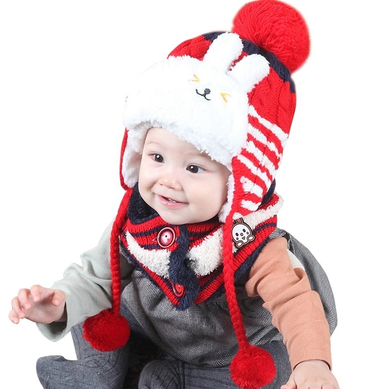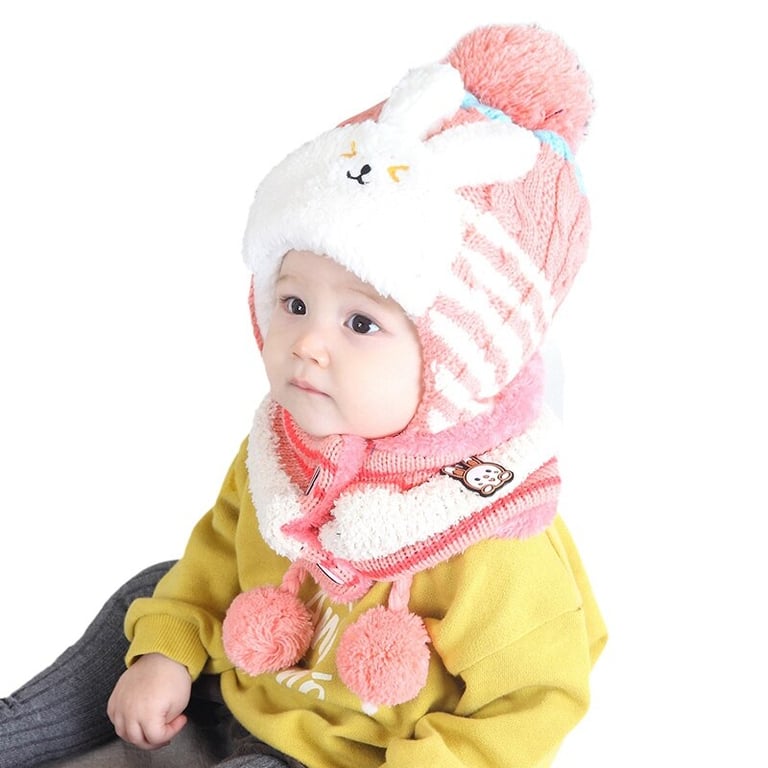 Children's winter set hat and neck warmer with bunny