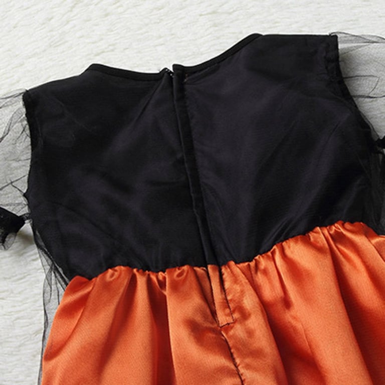 Witch costume for little girls. The set includes a dress with a wide tulle skirt and a pointed hat with a bow. Available in two colour variants.
