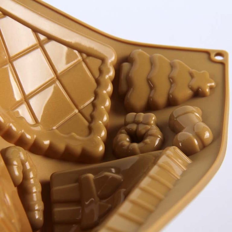 Silicone mould for a chocolate cottage.