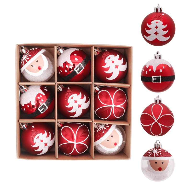 This set is ideal for decorating your Christmas tree during the festive season. Each bauble is made from high-quality plastic and features a unique Santa Claus design. The set includes 9 baubles in 4 different styles.