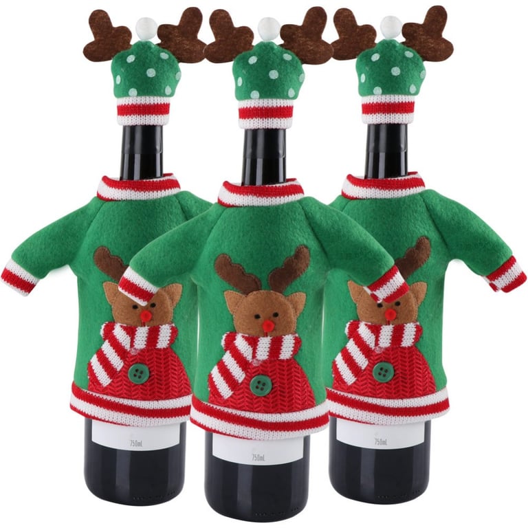Funny Christmas gift wrap for a bottle - sweater and hat.