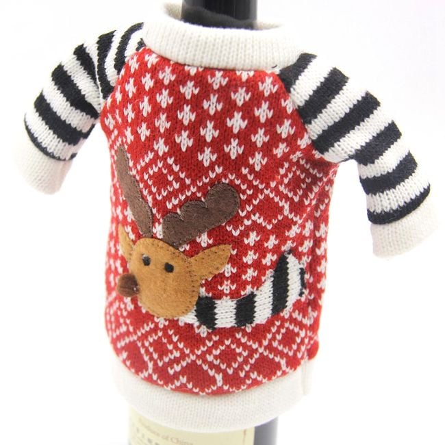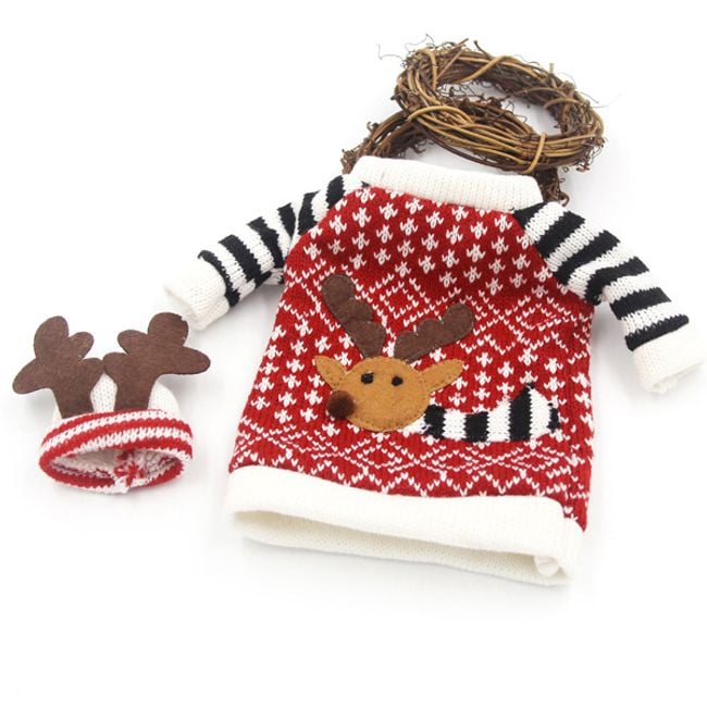 Cute bottle outfit set that includes a wool sweater and a hat with antlers.
