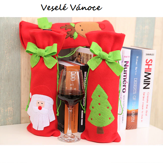 Christmas bottle wraps Santa Claus and reindeer.