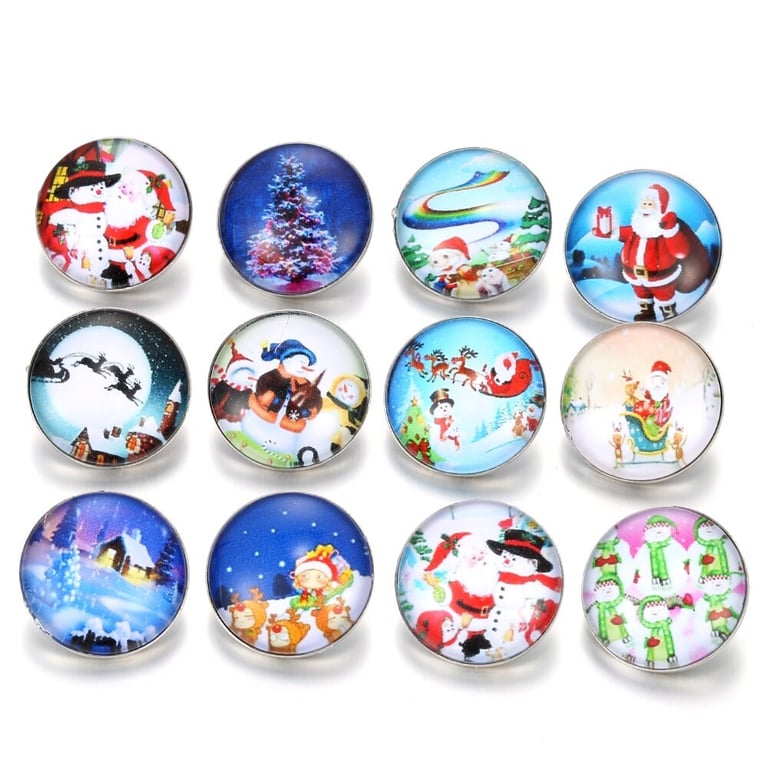Decorative glass buttons with Christmas motifs.