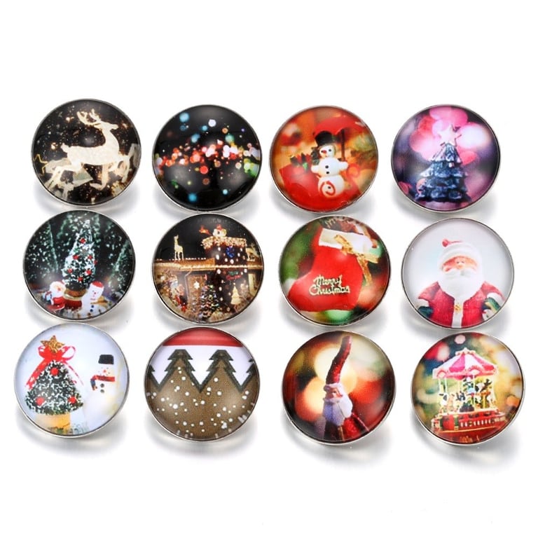 Decorative glass buttons with Christmas motifs.
