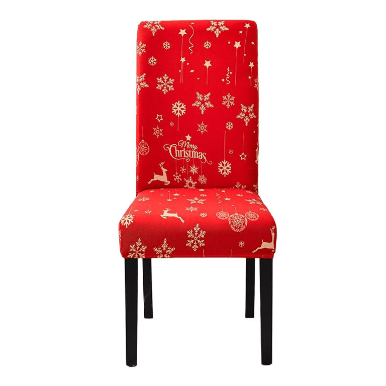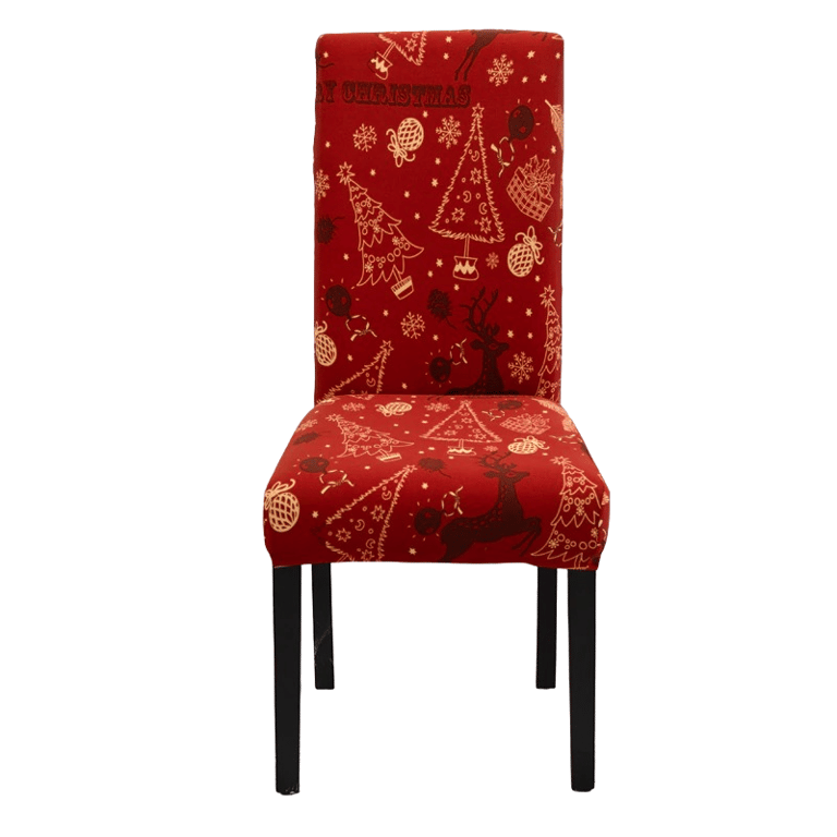 This chair cover is made from polyester and spandex. It is durable and stretchy, meaning it will last you for many more Christmases. So don't wait any longer and bring a bit of festive cheer into your home with this Christmas chair cover.
