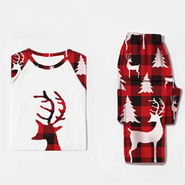 Christmas Checkered Family Pyjamas with Cheerful Deer Print