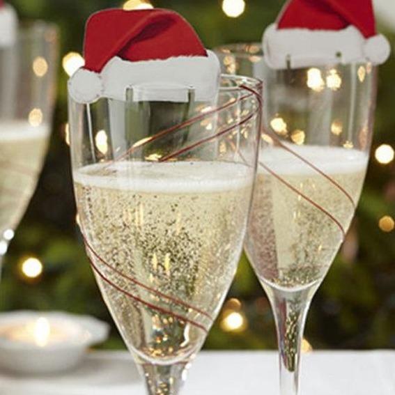 Original Christmas decorations for glasses in the shape of Santa Claus's hat.