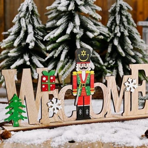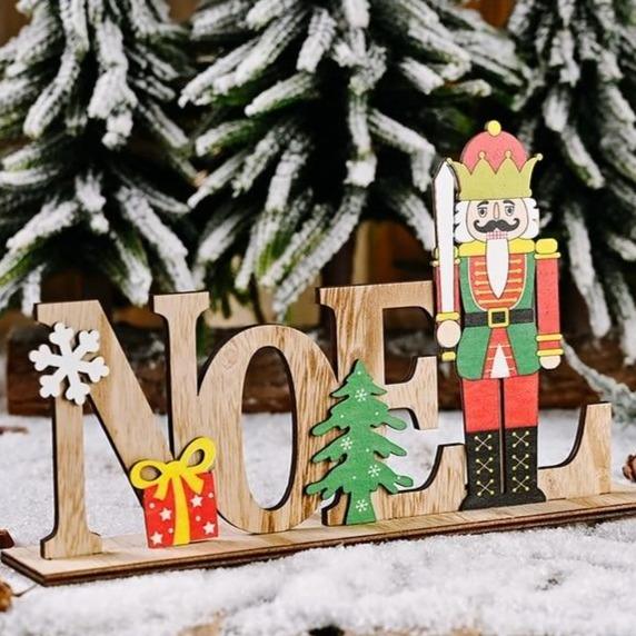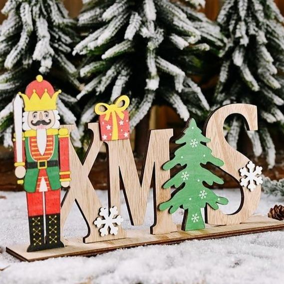 Christmas wooden decoration. Beautiful Christmas inscriptions.