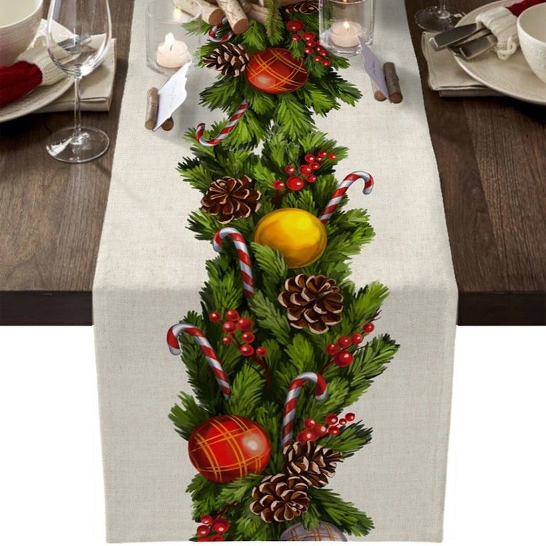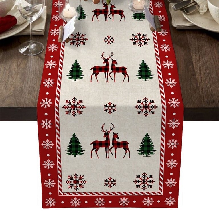Add a festive touch to your dining table with this beautiful Christmas decorative table runner! This linen table runner features a festive Christmas pattern and is the perfect way to adorn your dining table for the holidays. The table runner has dimensions of 150 x 33 cm, making it ideal for most dining tables.