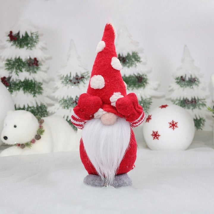 Christmas elf with polka dots on the hat.