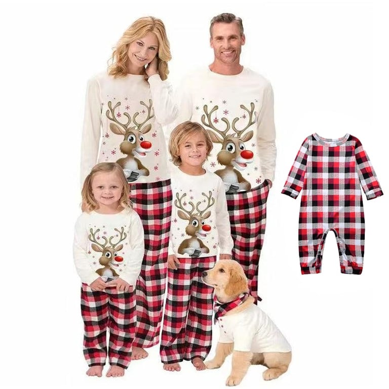 Christmas Family Pyjamas with Cheerful Reindeer Print