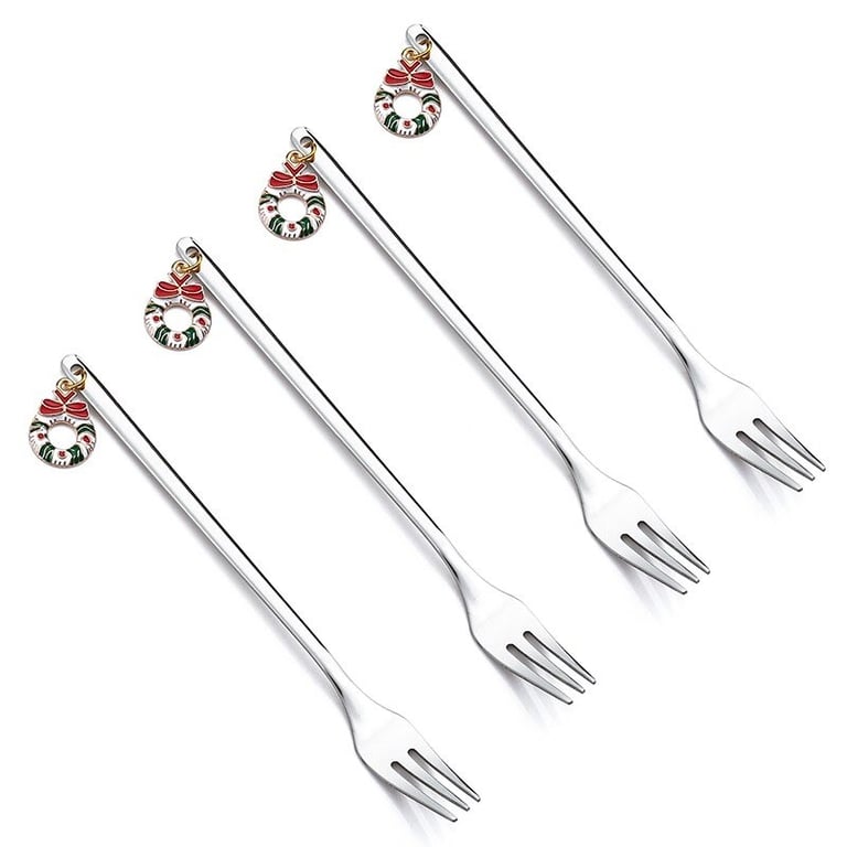 These forks are made of stainless steel and are elegant. Each fork is adorned with a charming pendant featuring a festive Christmas motif. They will be a great addition to your holiday table setting.