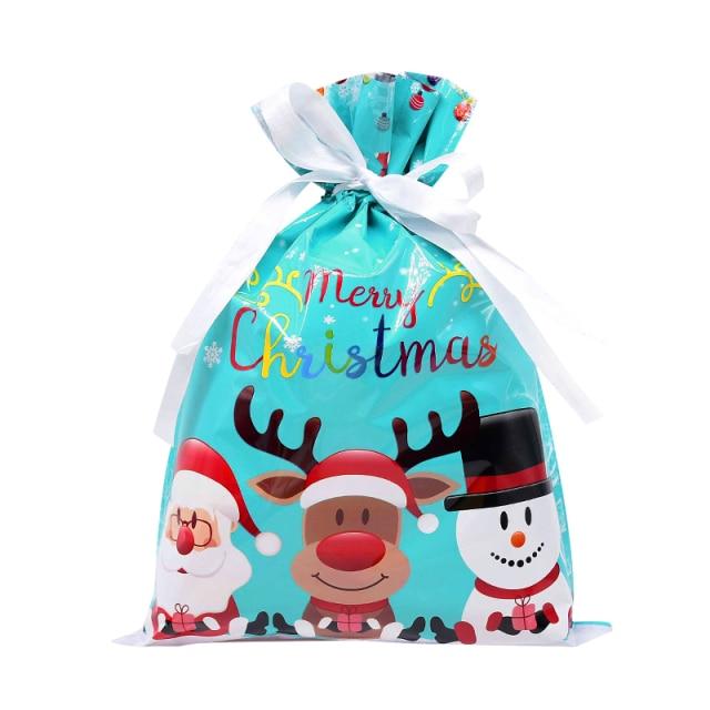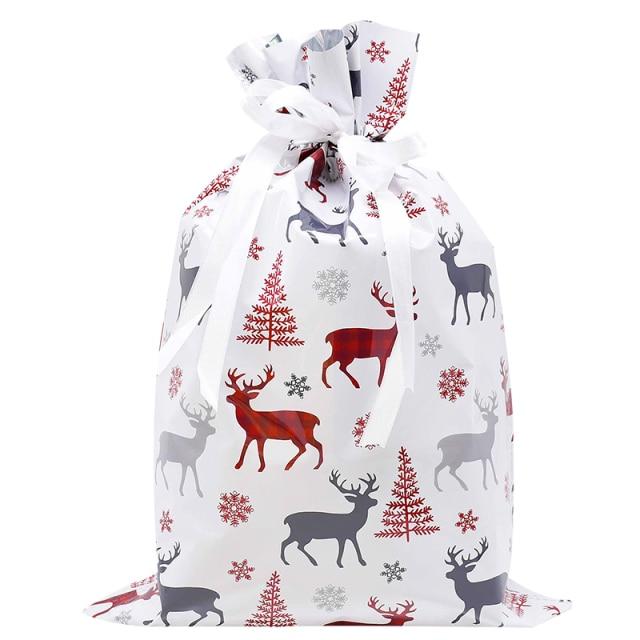 Christmas gift bags with a drawstring bow. Great for wrapping Christmas presents. Several options available.