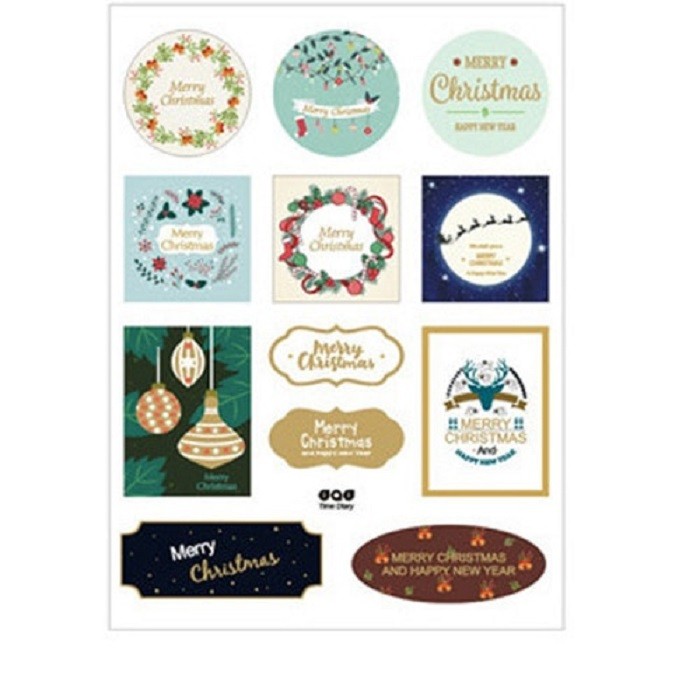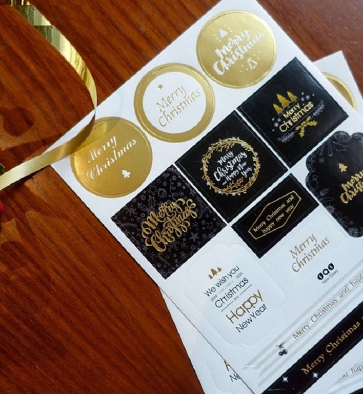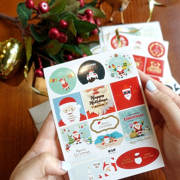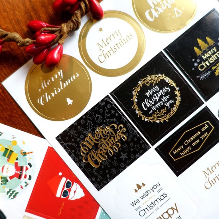 A list of decorative Christmas stickers for gifts.