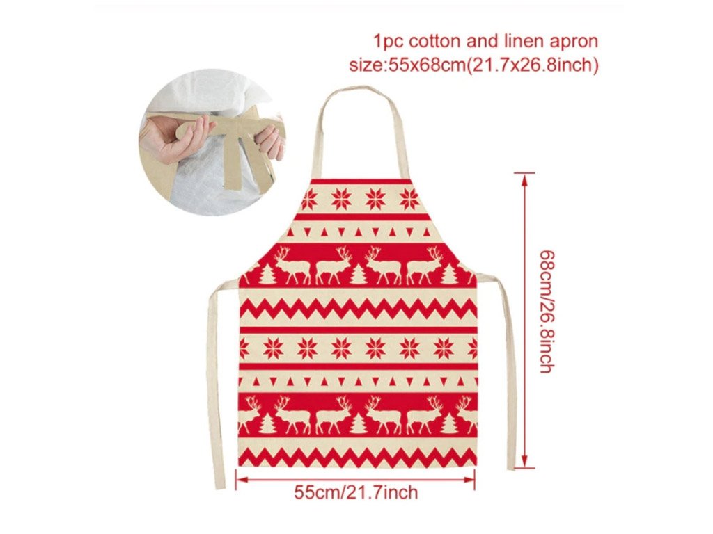 Welcome Christmas at the Christmas Eve table, whether frying carp or mixing potato salad, in a stylish apron with a themed design. It perfectly enhances the festive atmosphere while also protecting your clothes from getting dirty!
