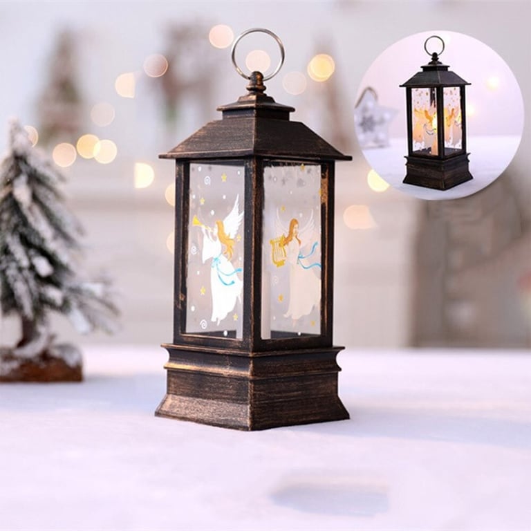 Decorative lantern with a Christmas motif and a hanging loop. Available in multiple design options.
