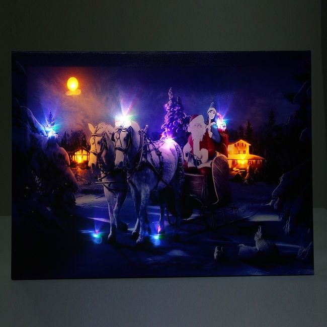 The canvas features a Christmas motif – it depicts Santa Claus and a horse-drawn sleigh.