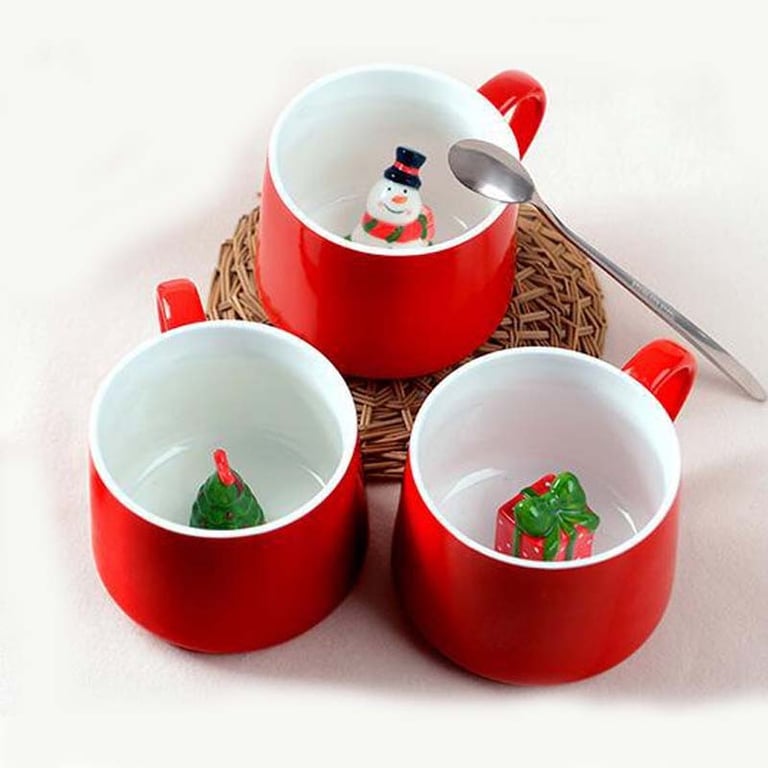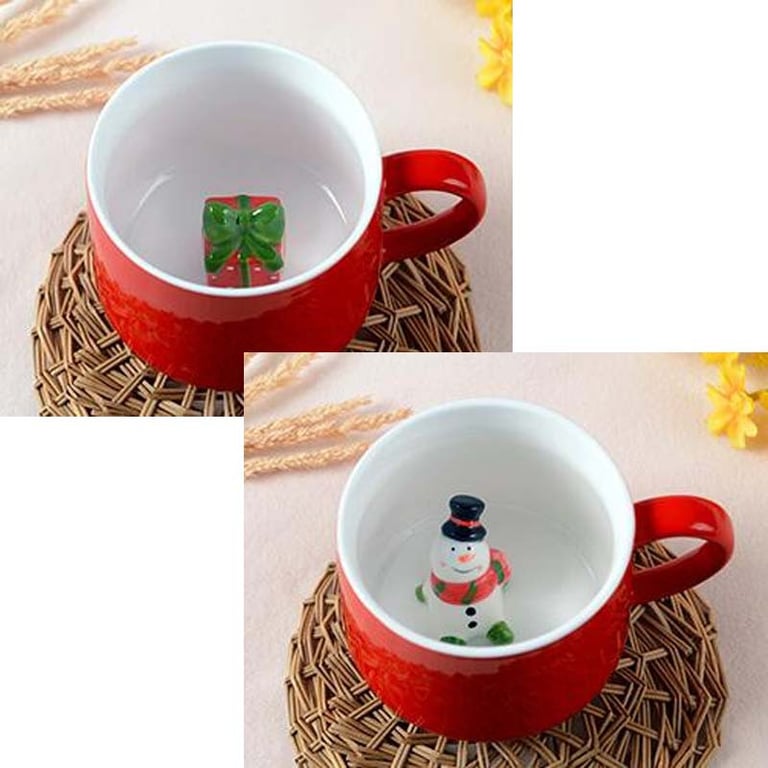 Christmas mug with a hidden design at the bottom – a gift, snowman, Santa, Christmas tree.