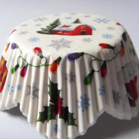 Christmas patterned cupcake cases in various styles. The set contains 25 pieces.