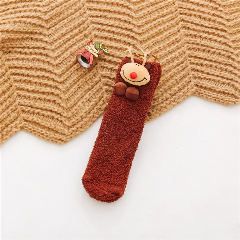Women's fluffy socks with a Christmas motif. Universal size 55-65 cm.