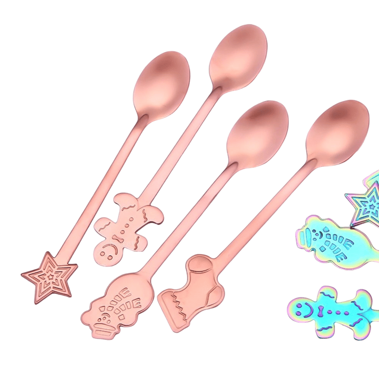 These spoons are made of stainless steel and are elegant. Each spoon is adorned with a different festive pattern. These spoons are sure to delight you, whether you want to mix in a bit of festive spirit or add elegance to your morning cup of coffee.
