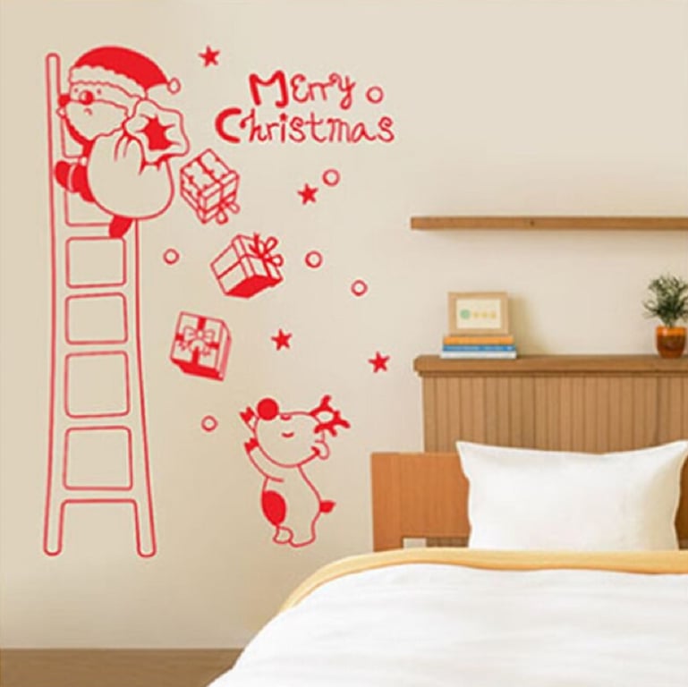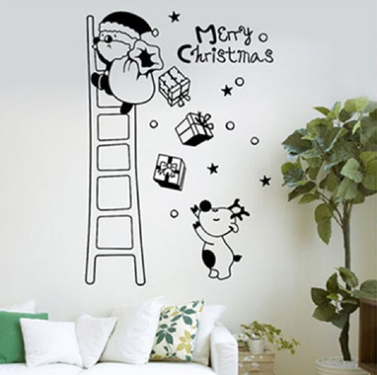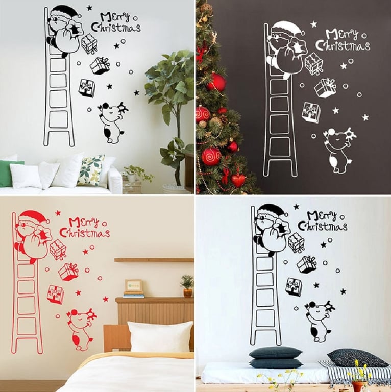 Large Christmas decorative sticker – Santa Claus on a ladder.