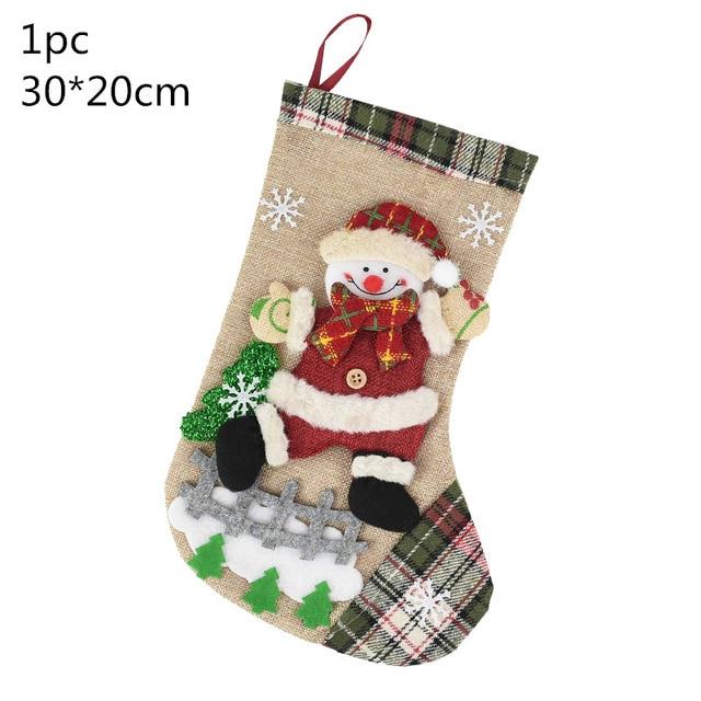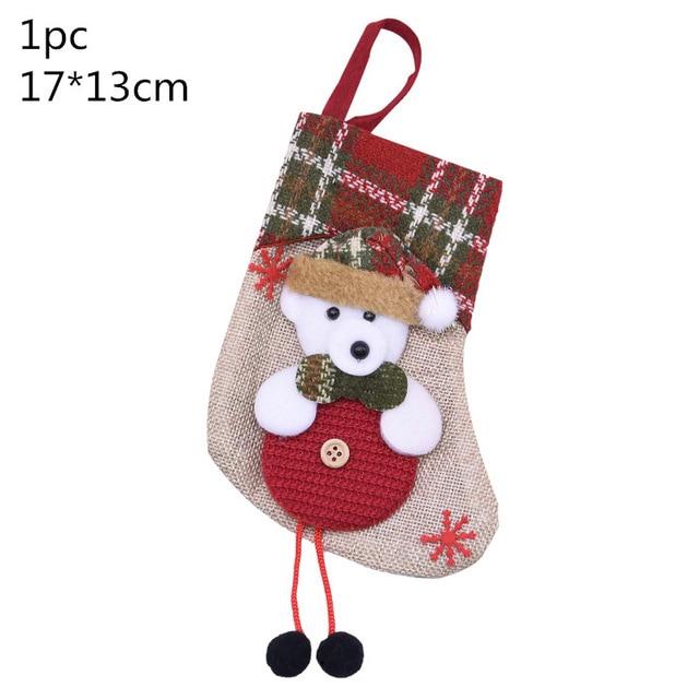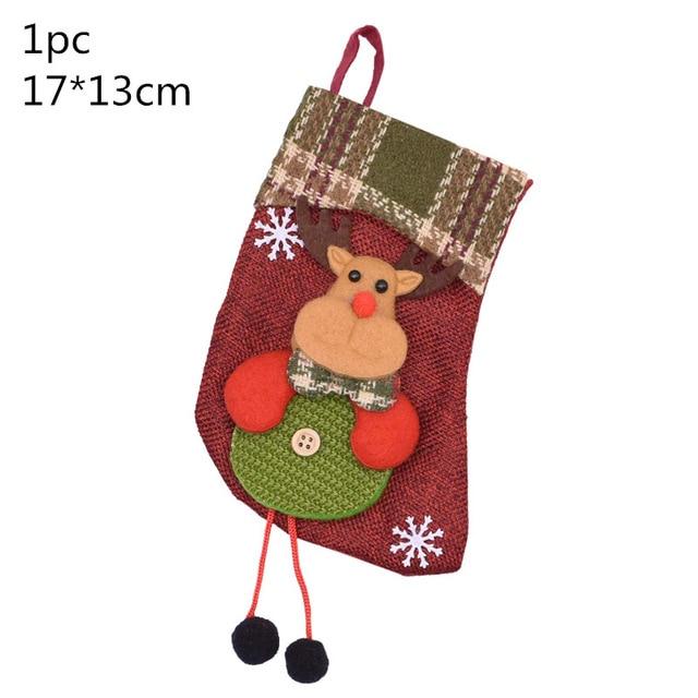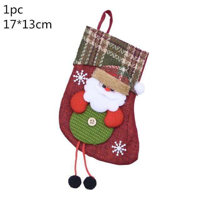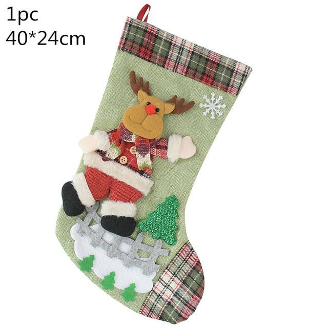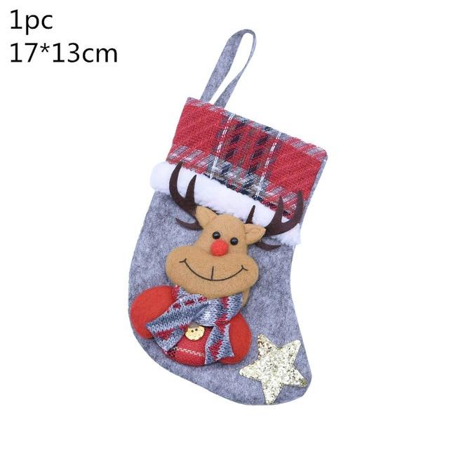 Christmas stocking with a multi-coloured pattern.
