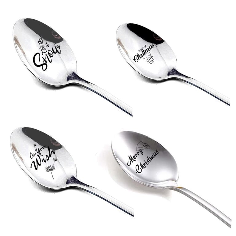Original tea or dessert spoons with a Christmas inscription.