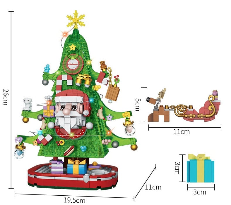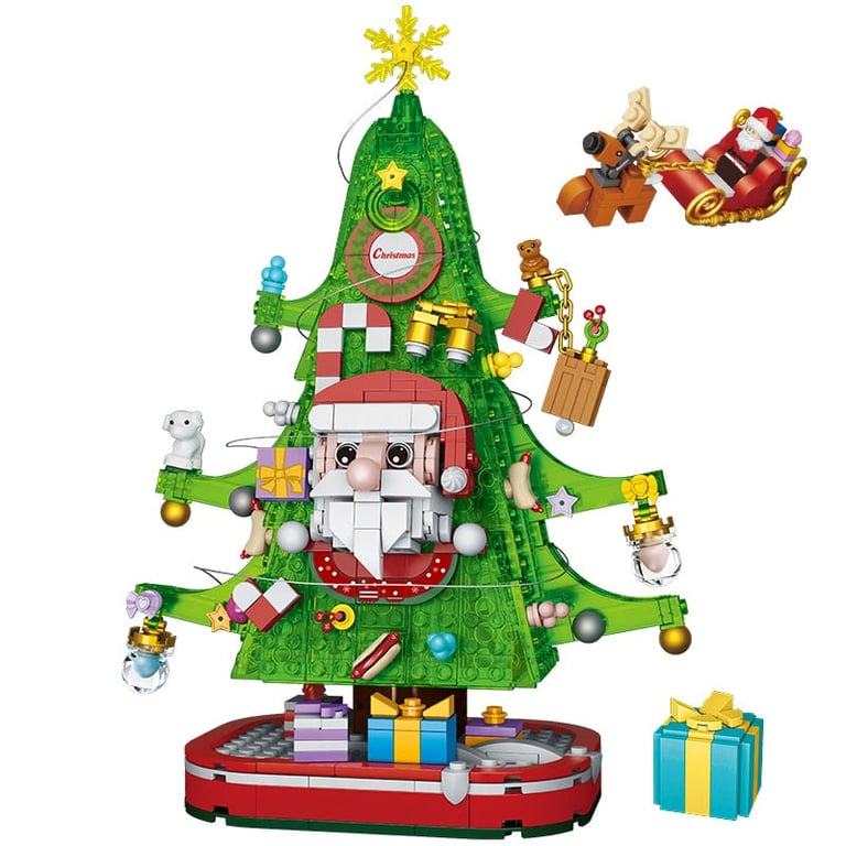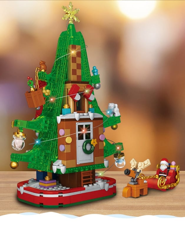 The Christmas tree building set is compatible with Lego building sets.