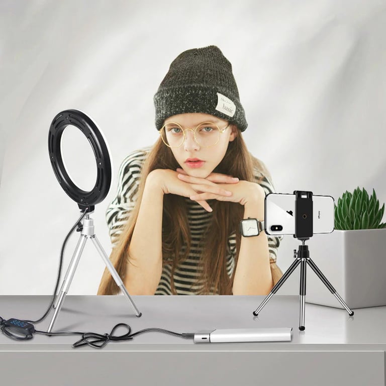 Light for your beauty vlogs and perfect selfie photos. The ring light with a temperature of up to 5600K is powered via USB.