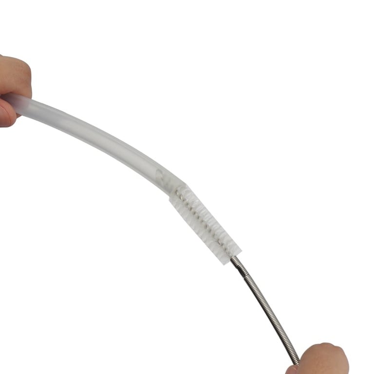 The brush is sufficiently flexible. The fine bristles will not damage the tubing.