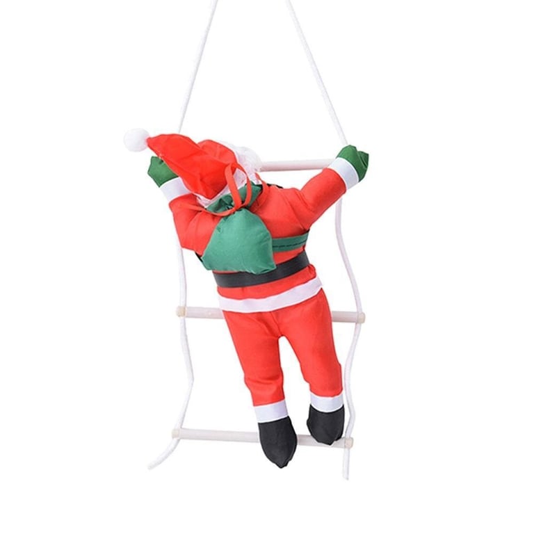 Original outdoor Christmas decoration - Santa Claus climbing a ladder or a rope.