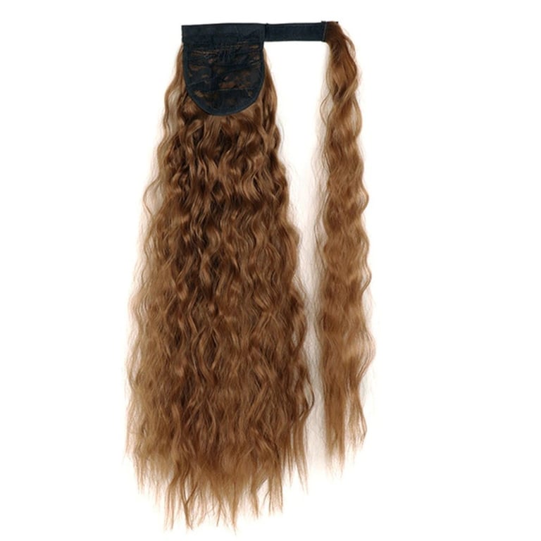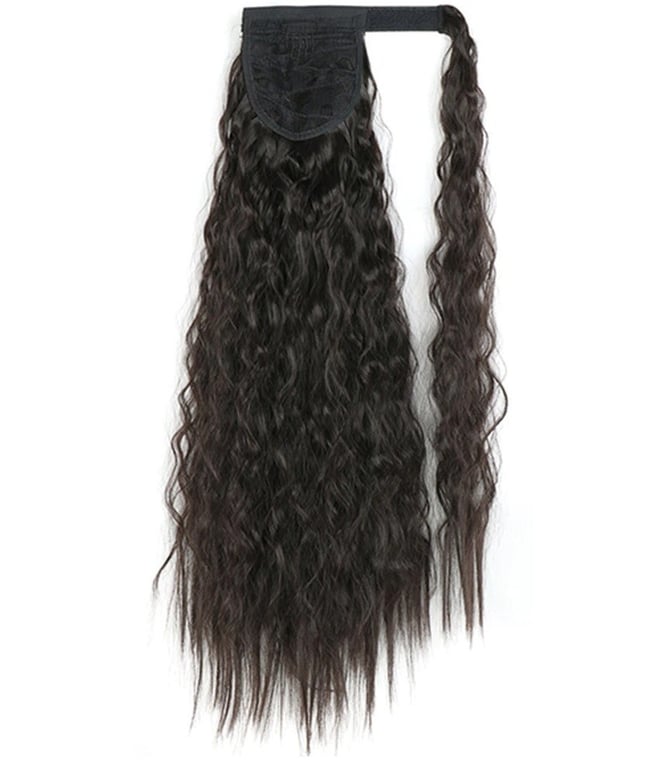 The curly hairpiece can be easily and quickly attached to your ponytail. The length of the hairpiece is approximately 56 cm. Secure attachment thanks to the clip and elastic band. It extends hair and creates volume. Suitable for fine and thinner hair. Use a side strand to cover the elastic band and Velcro. Made from high-quality synthetic fibres.