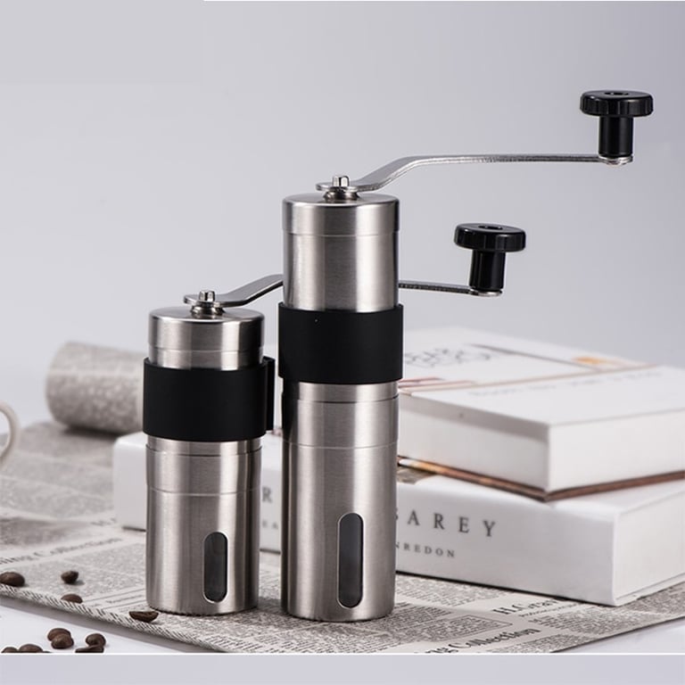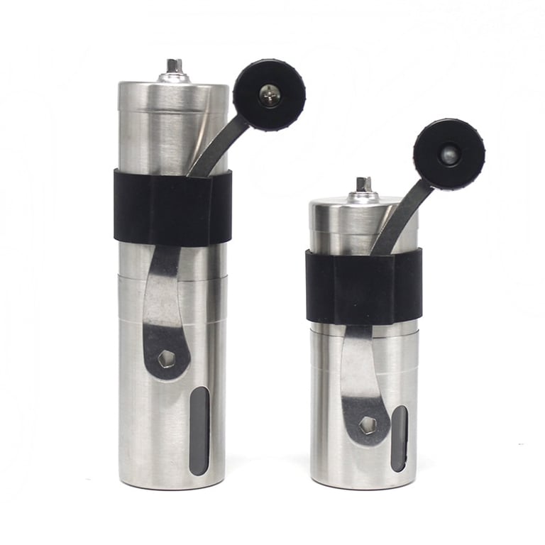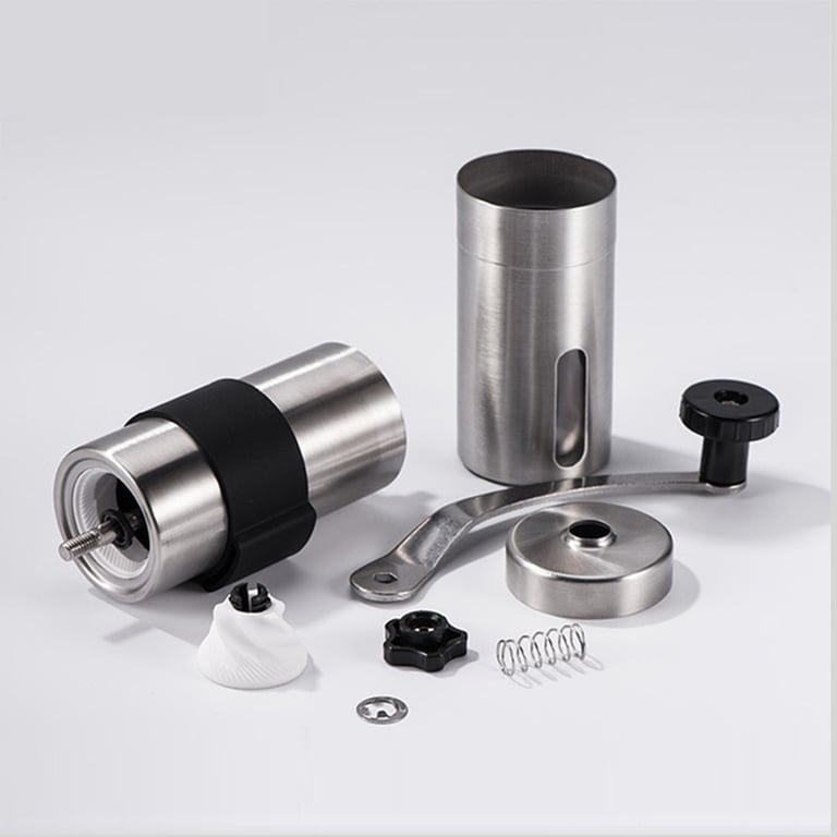 Manual coffee grinder made of stainless steel with a ceramic blade.