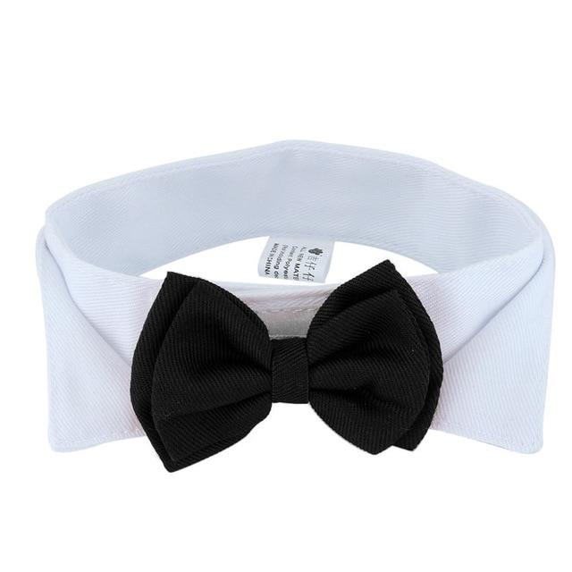 Elegant collar with a bow tie. In white with a red or black bow tie.