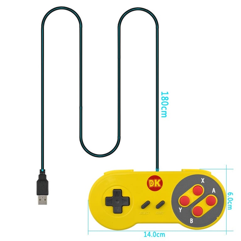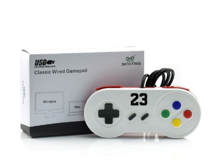The super 16-bit gamepad features 8 comfortable buttons in an ergonomic layout.