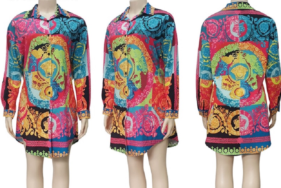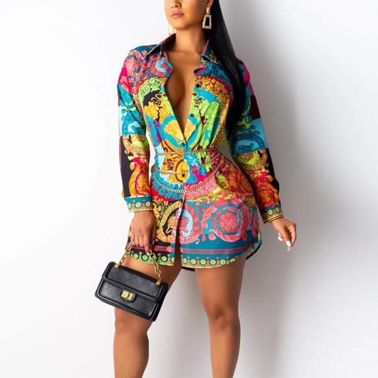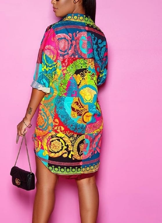Beautifully coloured mini dress in a shirt style with a collar.