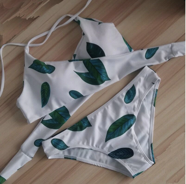 Colourful original two-piece women's swimsuit with a floral pattern.