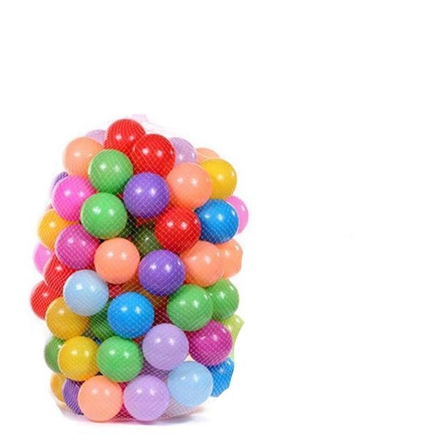 Colourful plastic soft balls. Available in packs of 100, 150, or 200 pieces.
