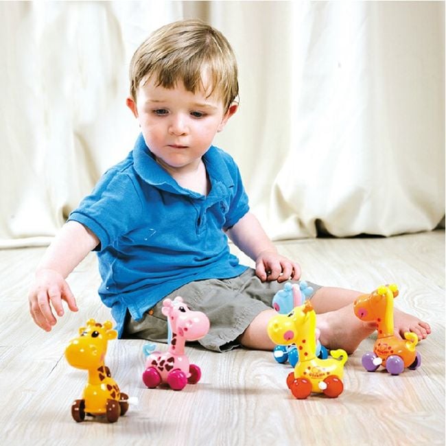 Children will have lots of fun with the cute giraffe – once pulled back, it will happily zoom around the room.