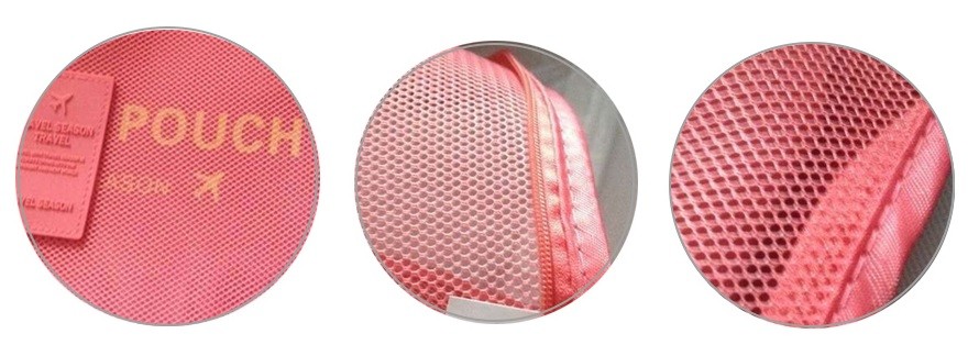 Three organisers for clean clothes combined with mesh. Three organisers for shoes, dirty laundry, and toiletries.